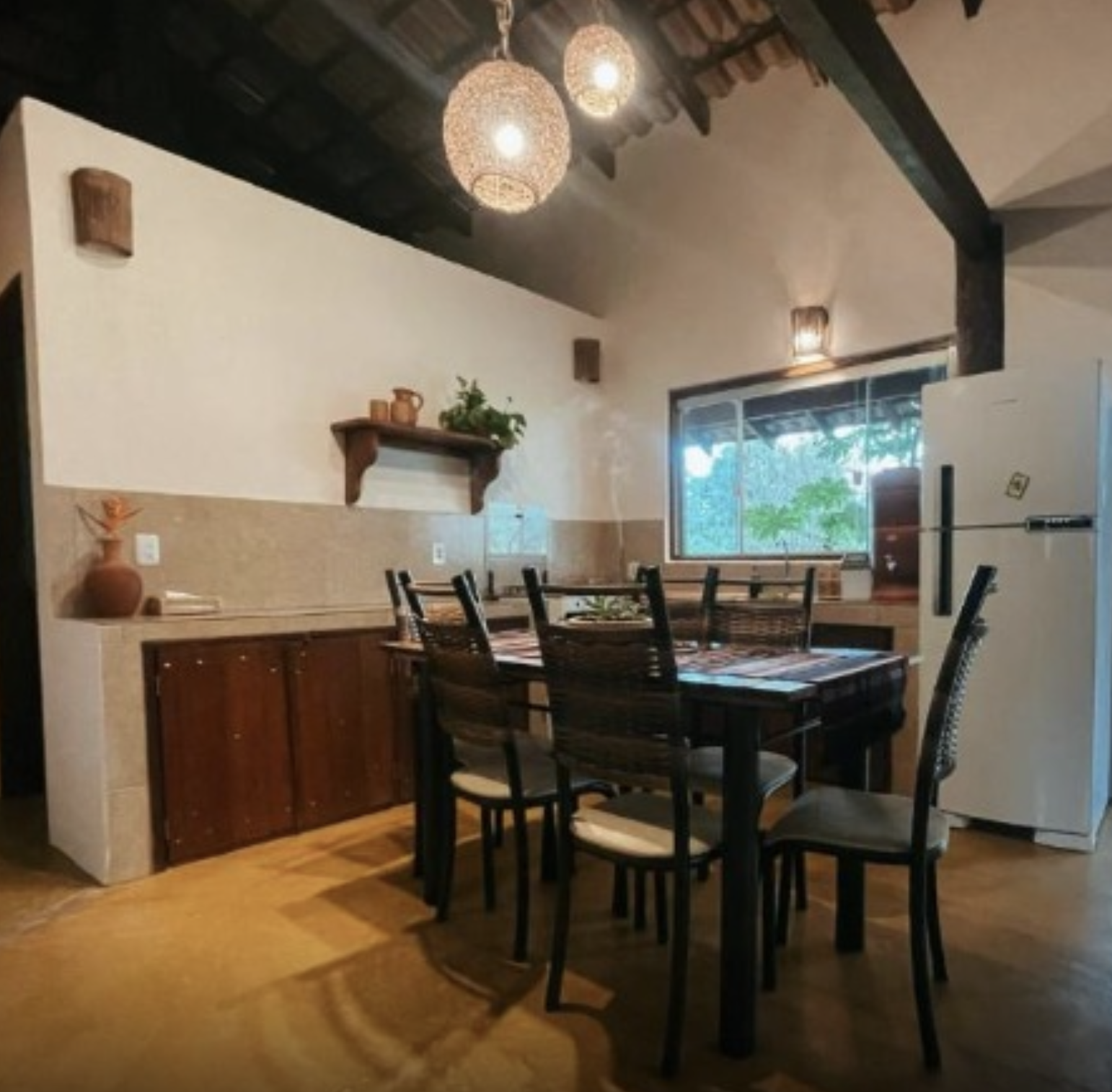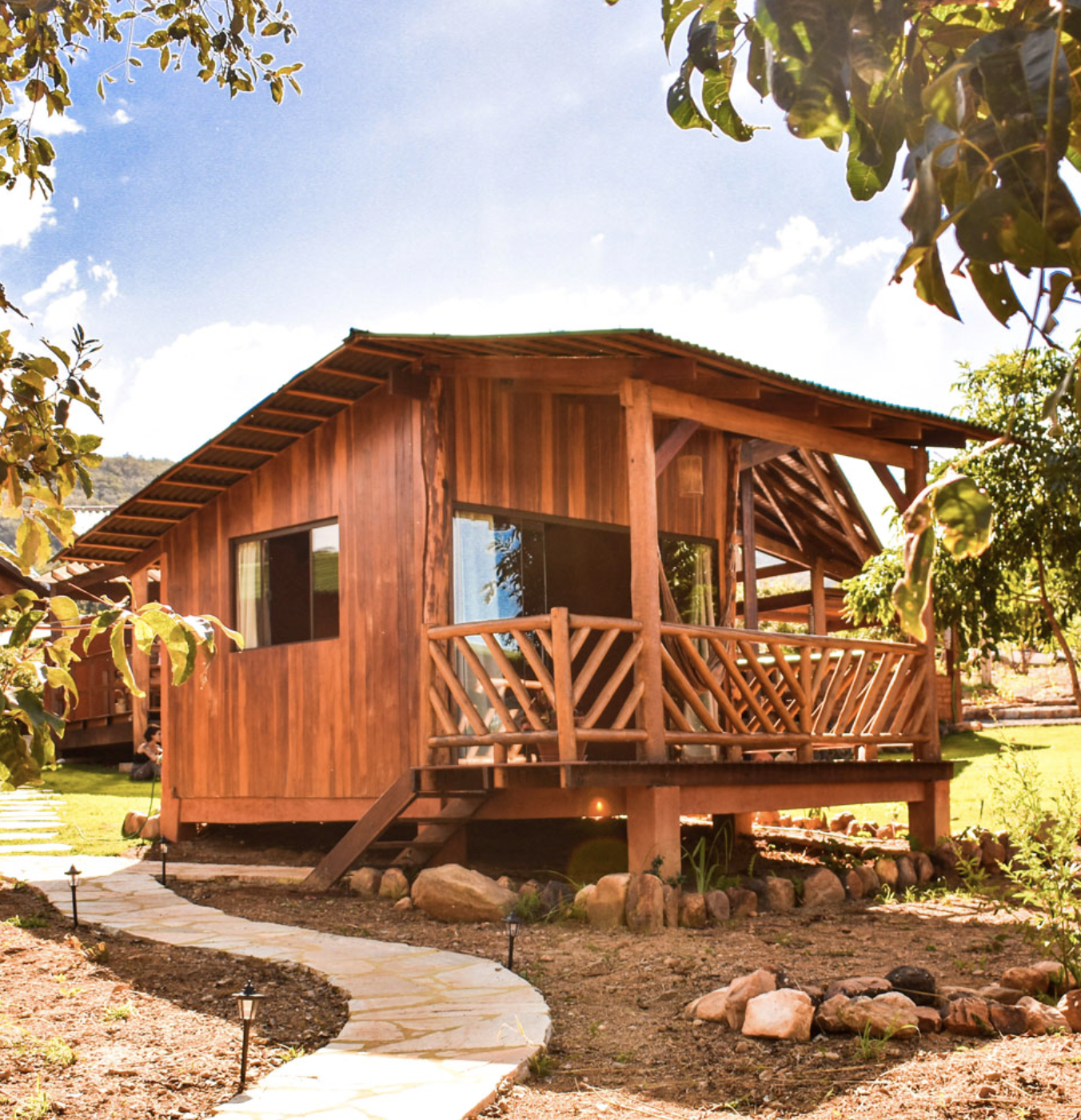 Os demais ambientes, como o salão e a área de alimentação, são totalmente integrados com a natureza, justamente para que você possa sentir a força do prana (energia vital), a potência da terra e toda a força e beleza que o Cerrado transborda.