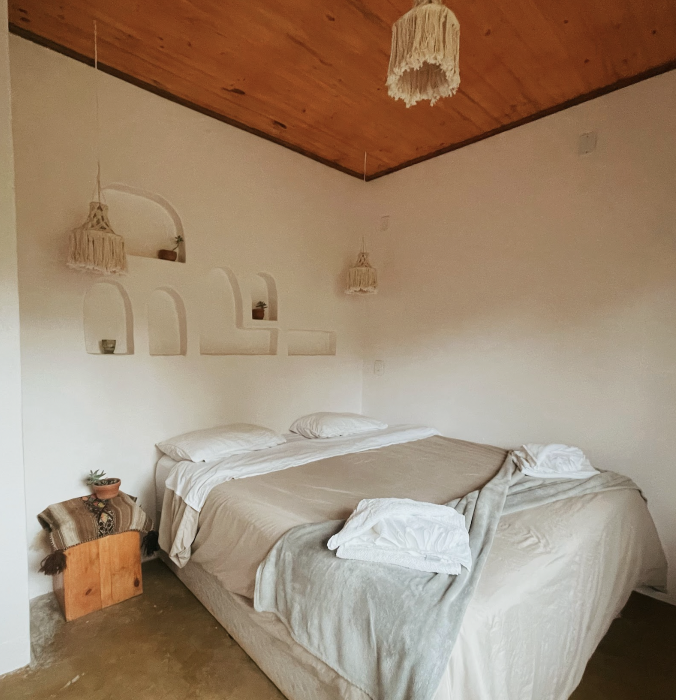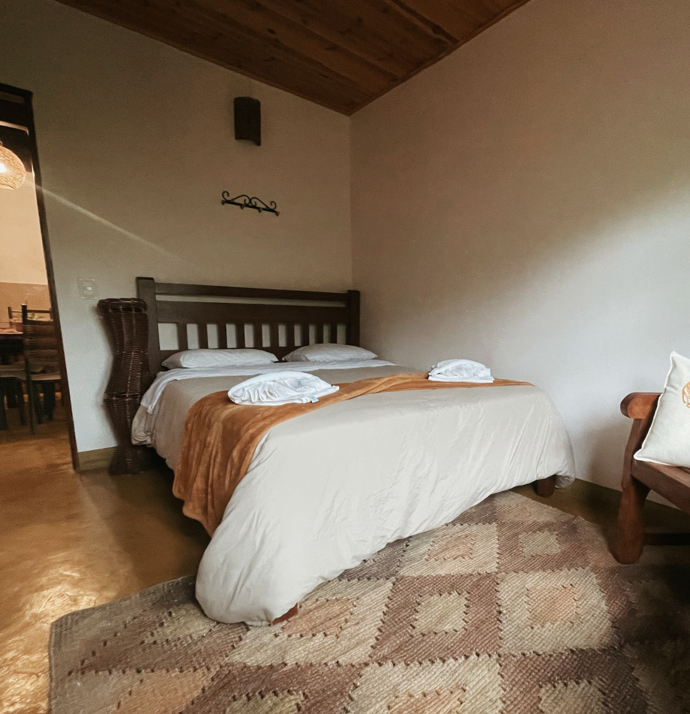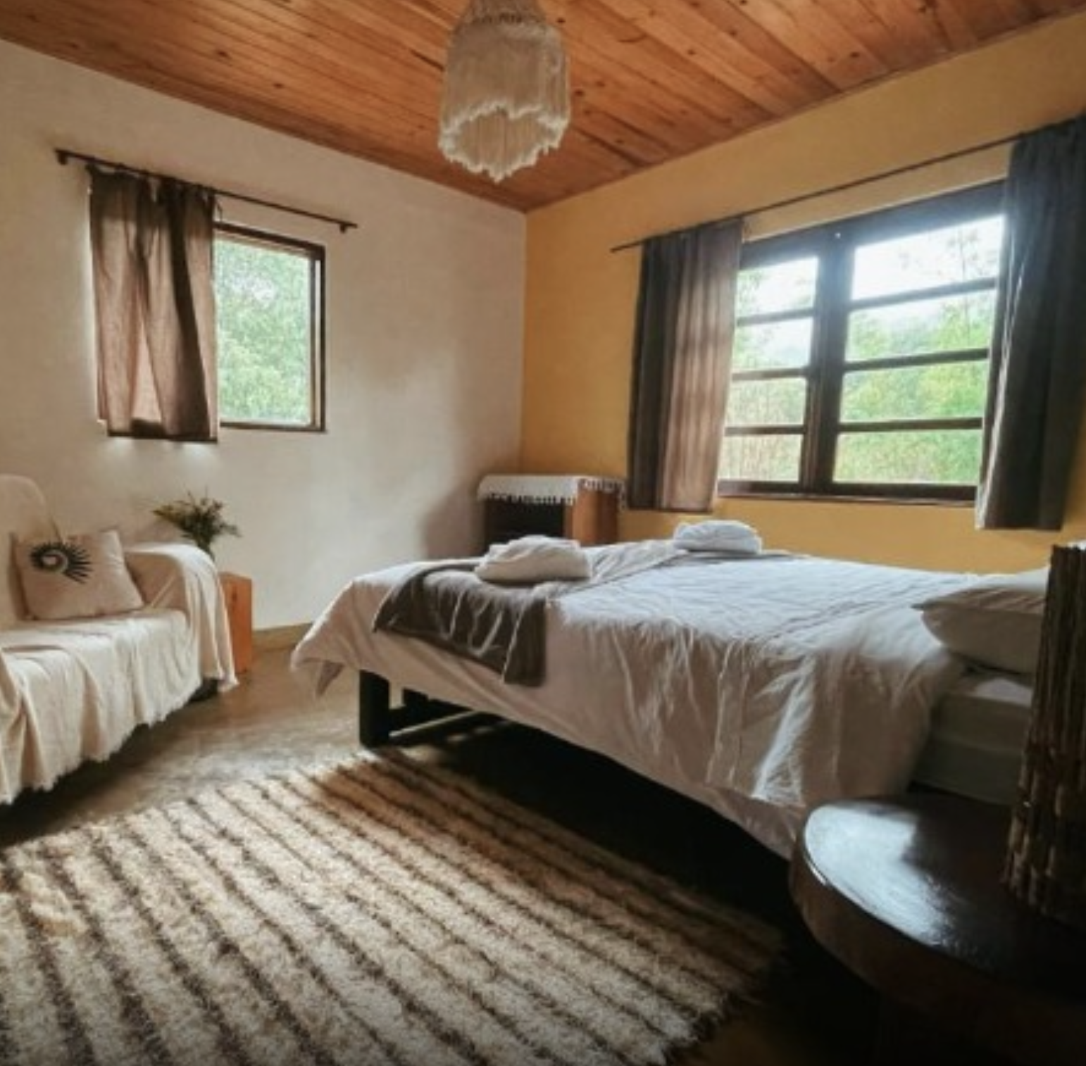 Equipado com cama de casal e banheiro privativo. Caso deseje, é possível acessar a cozinha da Casa Coruja pelo lado externo da suíte. Não possui ar condicionado.
